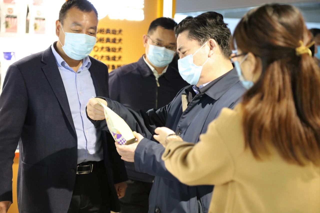 參觀指導過程中,統戰部部長冉萬祥與冀葉軍董事長親切交談,了解生產復工過程中遇到的問題。冉萬祥了解華興寵物食品的發展歷程